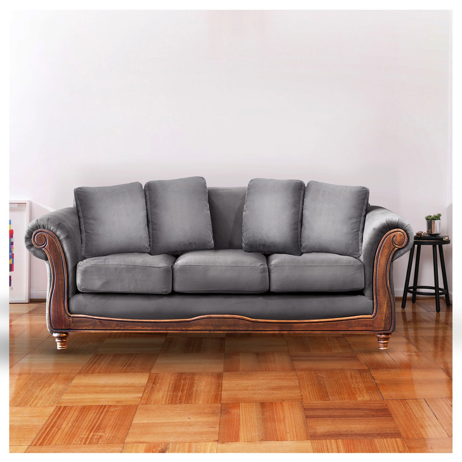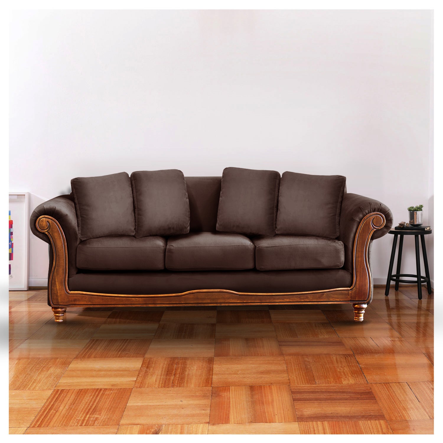 Con Sofá Rimini 3 cuerpos, combina elegancia y funcionalidad. Elaborado en tela y madera tallada a la vista, es un modelo que destaca por entregar calidez a los espacios, colaborando en el diseño de una experiencia acogedora.