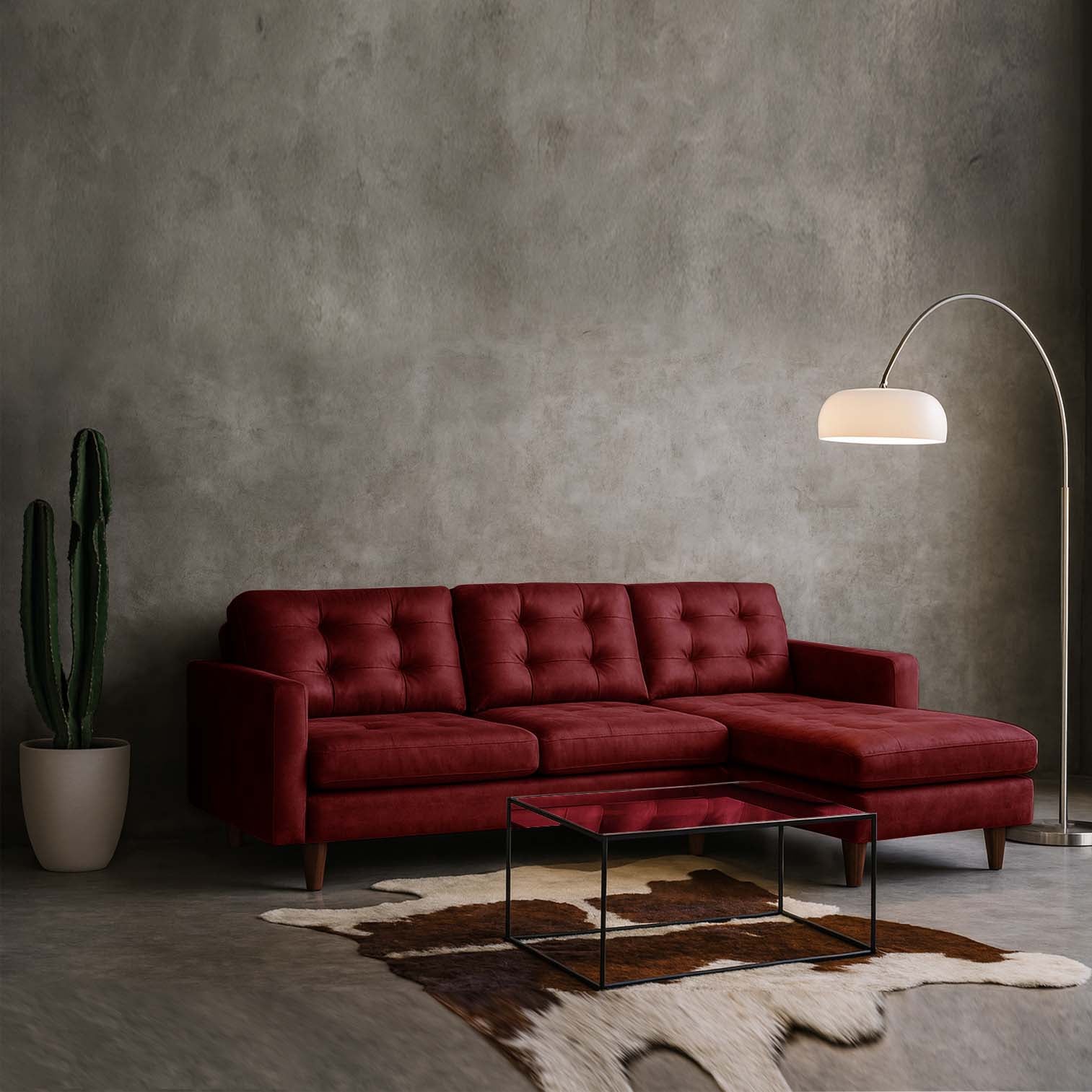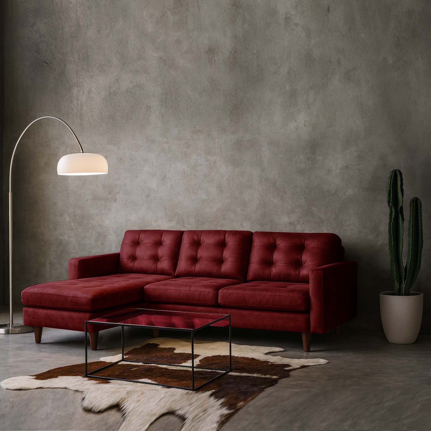 El Sofá Seccional Nápoles combina elegancia y versatilidad, adaptándose a cualquier espacio de tu hogar. Disponible en lino, velvet o cuero, ofrece comodidad y un estilo sofisticado. Fabricado a mano, destaca por su diseño tradicional y configuraciones personalizables, con opciones para orientación derecha o izquierda.