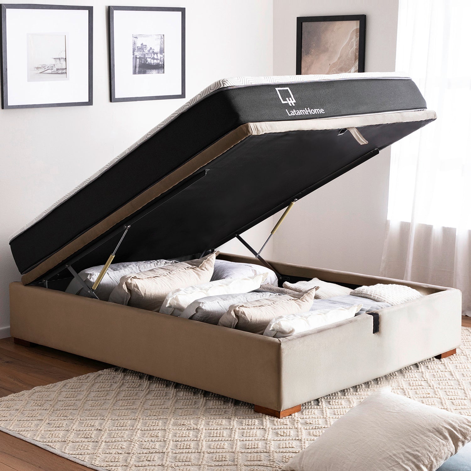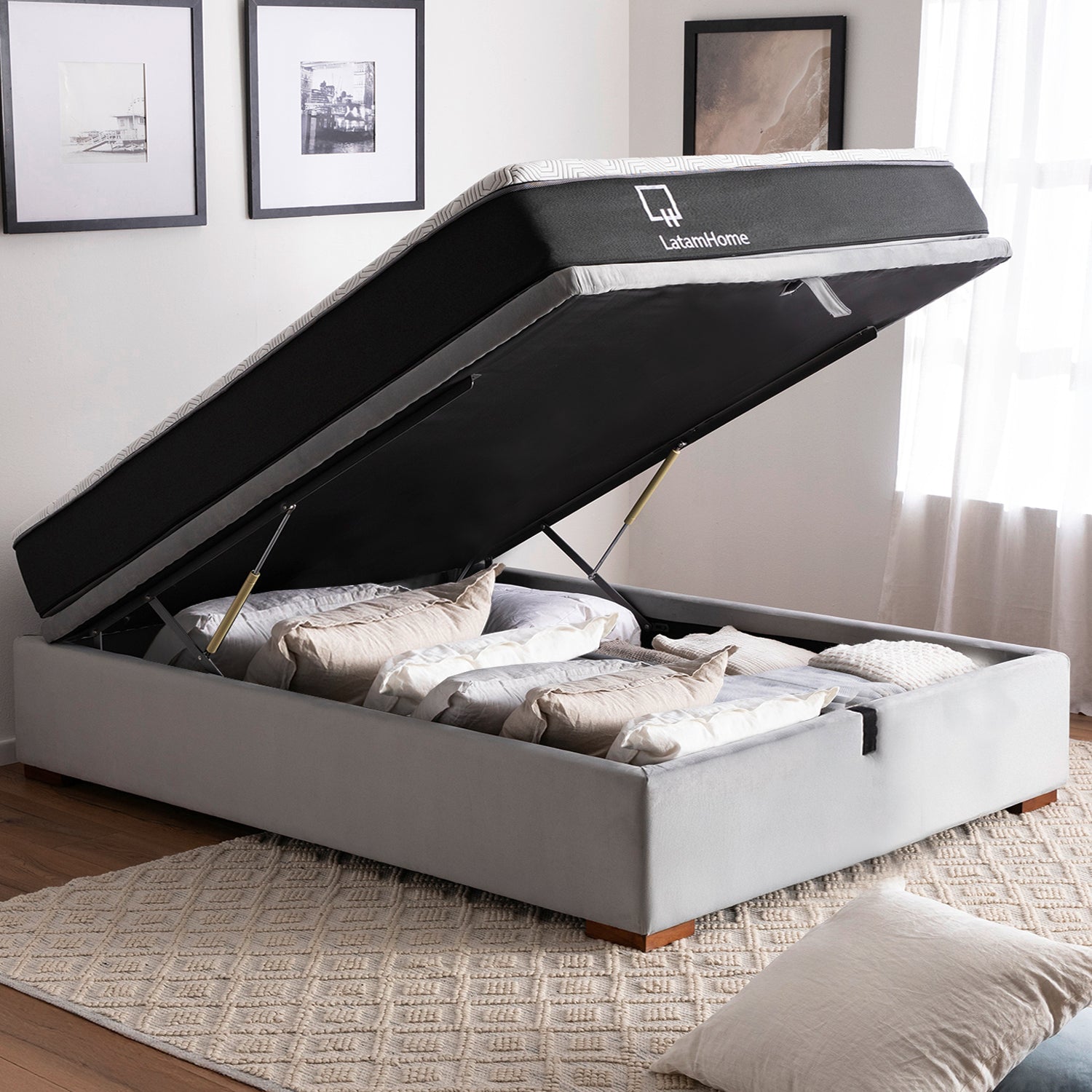 Nuestra cama Boxet es ideal para un descanso reparador ademas ofrece un amplio espacio de almacenaje integrado, perfecto para guardar objetos y optimizar el espacio en tu dormitorio, como ropa de cama y más. Su diseño permite abrir y cerrar fácilmente, asegurando resistencia y durabilidad.