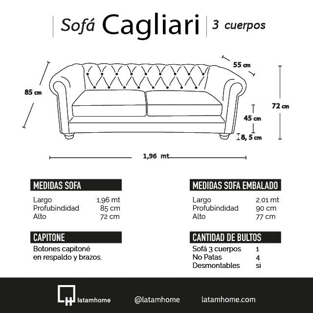 El Sofá Cagliari 3 cuerpos combina la elegancia de un diseño clásico con un estilo renovado que realza cualquier ambiente. Inspirado en el icónico modelo Chesterfield, este sofá ofrece una silueta refinada, ideal para quienes buscan carácter y sofisticación en sus muebles de sala.